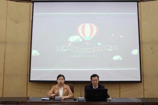 接着,中国银行淮安分行营业部个人客户服务经理刘经理给全体毕业生作了一场关于个人征信的报告。刘经理指出,个人征信就像个人的经济身份证,在房贷车贷申请、信用卡办理等高端消费时候需要查验个人征信,同时指出了一些影响个人征信的不良消费习惯,并播放了案例视频,随后对同学们进行有奖问答,帮助同学们更深刻地掌握征信安全知识。
