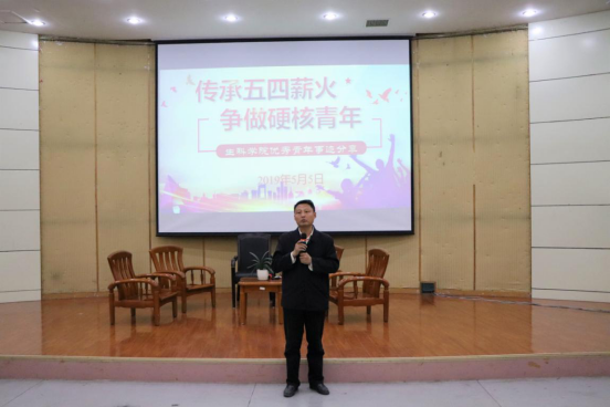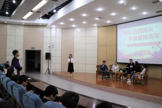 为了纪念“五四运动”一百周年,激发青年员工弘扬“爱国、进步、民主、科学”的五四精神,5月5日晚上7∶00,太阳成集团122ccvip于图书馆报告厅开展了“传承五四薪火 争做硬核青年”优秀青年事迹分享活动,公司党委副书记、副经理周定晖出席活动并讲话,太阳成集团122ccvip学工办主任王明霞和17级、18级的员工参加了活动。
