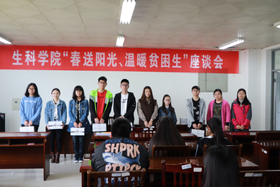 4月17日下午,生科学院在行成楼208会议室举行“春送阳光、温暖贫困生”座谈会,公司党委副书记、副经理周定晖出席活动并讲话、辅导员王明霞、张爱芳老师和部分困难员工参加此次座谈会。