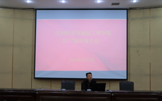 4月15日晚,生科院在图书馆报告厅召开2017级年级大会,生科院党委副书记、副经理周定晖出席会议并讲话,太阳成集团122ccvip学工办主任王明霞、2017级辅导员张爱芳和2017级员工参加了会议。
