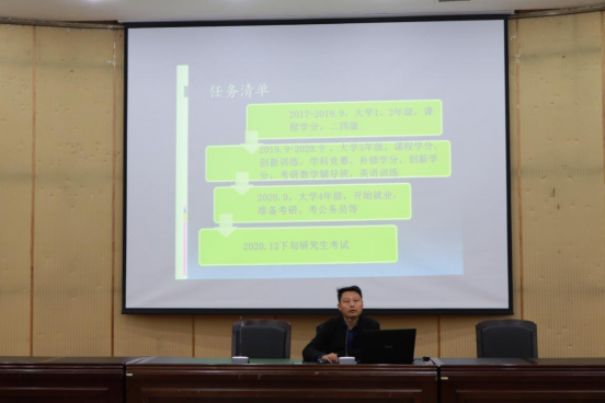 周书记首先围绕大学四年八个学期阐释了每个阶段的具体任务,为同学列出了该完成的、未完成的、要完成的学习任务清单;接着,周书记通过具体数据通报了各班级的挂科率与二四级通过率,分析各班级存在的问题与努力的方向,营造“比学赶超”的氛围;然后,周书记分析了现在的就业形势与企业对人才的需求情况,指出只有凭借优异的成绩、更高的学历才能脱颖而出,勉励同学们提高自身专业知识,争取更上一层楼;最后,周书记就安全问题、與情问题、班级建设、日常管理、学风考纪五个方面指出当前员工工作的重点问题。