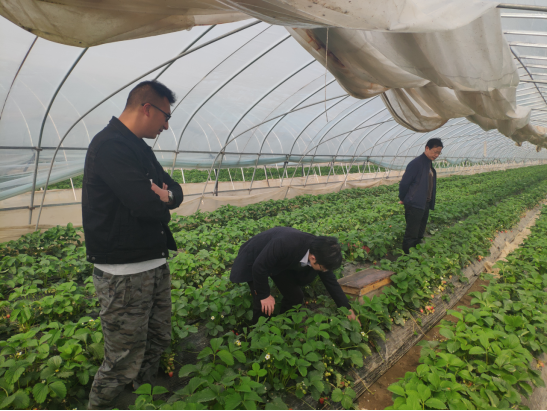2019年3月28日,太阳成集团122ccvip江苏省草莓产业技术体系省草莓产业技术体系省草莓产业技术体系盱眙基地团队一行五人,应邀在基地主任陈伯清教授带领下赴淮安古庄牛生态农业开发有限公司草莓园调研、指导生产。