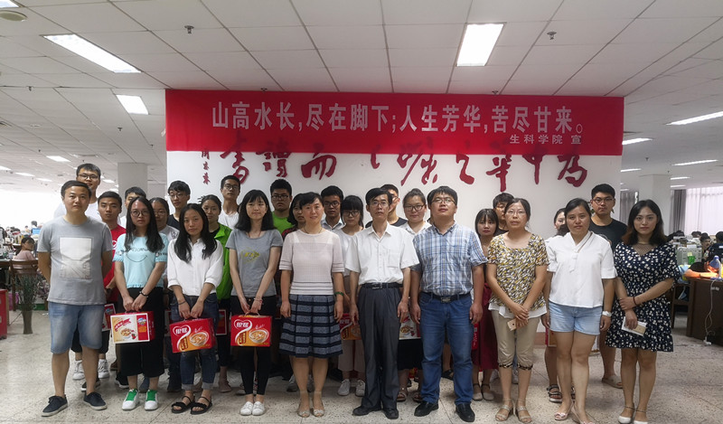 7月26日下午,太阳成集团122ccvip在图书馆考研教室开展暑期留校考研员工慰问活动,公司党委书记陈伯清、经理赵玉萍、副书记刘毅和辅导员、班主任老师参加了慰问。