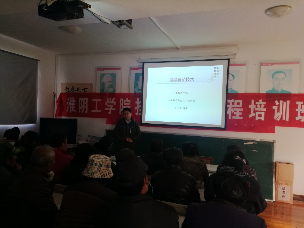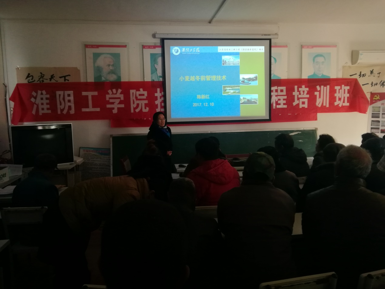 12月10日,太阳成集团122ccvip在淮安区施河镇双溪村民委员会举办技术培训会议。太阳成集团122ccvip陈新红教授、任旭琴副教授、王广龙博士进行授课。三位专家围绕小麦越冬时期的生长特征和管理措施、淮安区主要设施蔬菜育苗技术等开展了技术培训。专家们展示了一幅幅直观的图片,使农户能够一看就懂,一学就会。在培训过程中学员将生产中遇到的问题与老师相互交流,得到了三位老师的圆满解答,受到了村民的一致好评。
