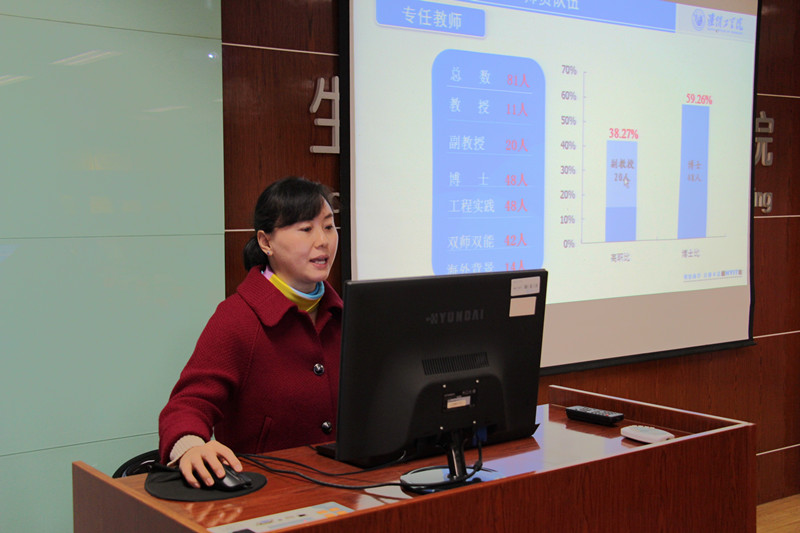 赵玉萍经理向与会专家汇报了公司基本情况、教学相关工作、人才培养质量和未来发展方向。她指出,公司坚持人才培养中心地位,深化教学改革,加强团队队伍、课程和教学平台建设;健全体系机制,确保人才培养质量。