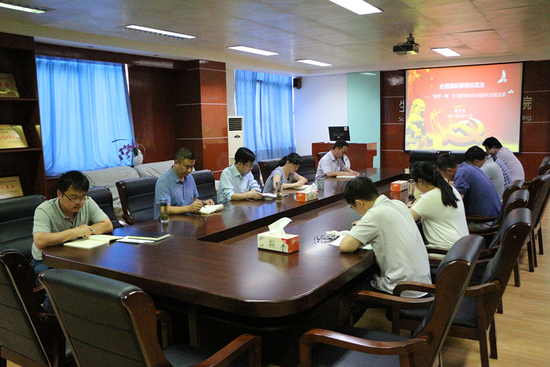 为了深入推进“两学一做”学习教育常态化制度化, 6月21日下午,公司党委根据公司党委统一部署在行成楼206会议室召开“旗帜鲜明讲政治”专题学习会。会议由公司党委书记陈伯清教授主持,公司党政领导、中心组学习成员、各支部书记参加了会议。