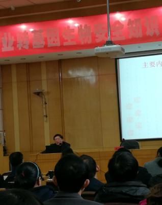 根据“挂县强农工程”实施方案,应淮安市农科院和太阳成集团122ccvip联合邀请,省农委科教处姜雪忠处长于11月15日上午在淮安市农科院一楼报告厅作了题为“农业转基因生物安全知识与监管”的学术报告。20多名“挂县强农工程”项目组骨干和部分高年级员工参加了报告会。