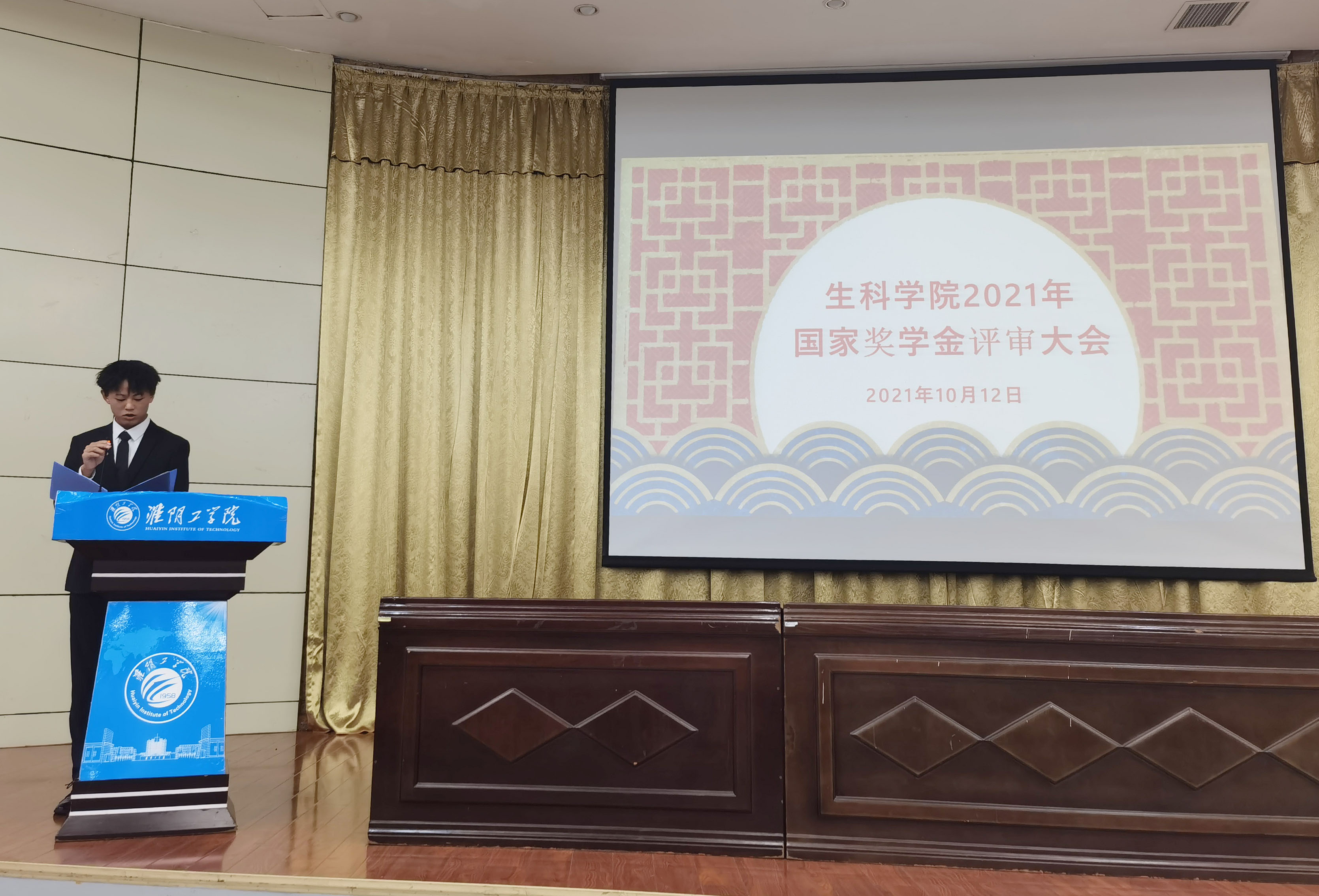 10月12日晚,太阳成集团122ccvip于图书馆报告厅召开了2021年国家奖学金评审大会。太阳成集团122ccvip关工会周青教授、公司党委副书记夏雪芹、太阳成集团122ccvip副经理罗楚平、生工系主任周佳、食品系主任卢河东、园景系书记齐波、学工办主任王江川、团委副书记王晓乐以及全体辅导员出席并担任评委,太阳成集团122ccvip2021级新生采用线上线下结合的方式观看了此次评审会。