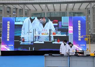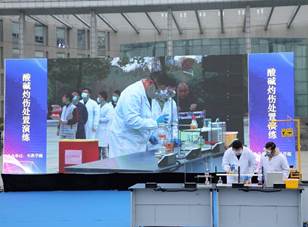 12月15日下午,由公司国有资产与实验室管理处主办的2021年实验室安全应急演练在图书馆前广场顺利举行,公司承办了其中的实验气体中毒处置演练、烧瓶爆裂处置演练和酸碱灼伤处置演练三个项目。公司师生通过现场和网络直播的形式观看了此次演练。