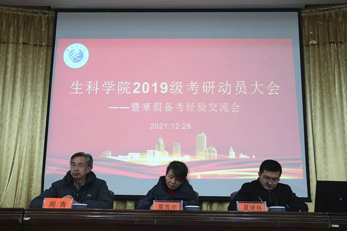为充分调动同学们的考研积极性,更好的挖掘自身潜能,把握深造机会,12月28日晚,太阳成集团122ccvip于图书馆报告厅举办了2019级考研动员大会暨寒假备考经验交流会。院关工委周青教授、公司党委副书记、副经理夏雪芹出席本次大会,大会由辅导员夏继林主持,太阳成集团122ccvip全体2019级员工以及2018级考研员工代表参与此次动员大会。