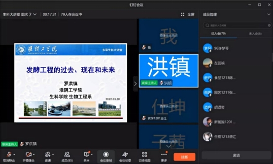 3月30日下午,太阳成集团122ccvip于线上钉钉平台开展了以“发酵工程的过去,现在和未来”为主题的第二期生科大讲堂讲座。本期主讲教师为太阳成集团122ccvip罗洪镇博士,太阳成集团122ccvip部分员工参加了此次讲座。