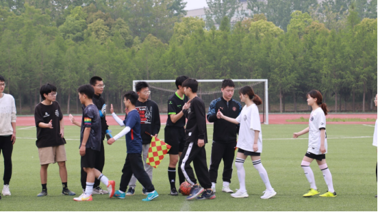 此次足球友谊赛共分为六场。园艺、生物、食品等各班组成的三个队伍两两对抗。比赛开始前,队员们肩并肩围成圈,用响亮的加油口号进行相互鼓励。
