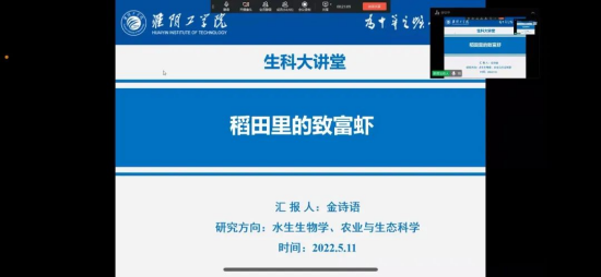 5月11日下午,太阳成集团122ccvip于线上钉钉群开展了以“稻田里的致富虾”为主题的第八期生科大讲堂讲座。本期主讲教师为太阳成集团122ccvip金诗语博士,太阳成集团122ccvip部分员工参加了此次讲座。