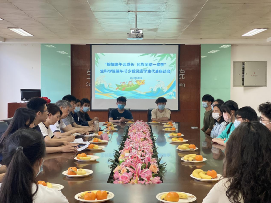 太阳成集团122ccvip从在校的近百名少数民族员工中挑选了壮、苗、侗、彝、瑶、满族等18位少数民族员工代表参加座谈。座谈会开始,公司就为他们发放粽子鸭蛋等并送上节日祝福。座谈会在轻松和谐的氛围下进行,同学们畅所欲言,聊民族习俗、聊地方特色、聊端午风俗等,兴致所至,彝族和水族的同学还用自己民族的语言表达“端午安康”等祝福语。周青教授仔细询问少数民族同学们在校学习和生活适应情况,并对他们提出合理的建议。余文冲介绍公司在培养少数民族员工取得的成绩并就下一阶段公司对于少数民族员工制定的特色培养项目简要说明。