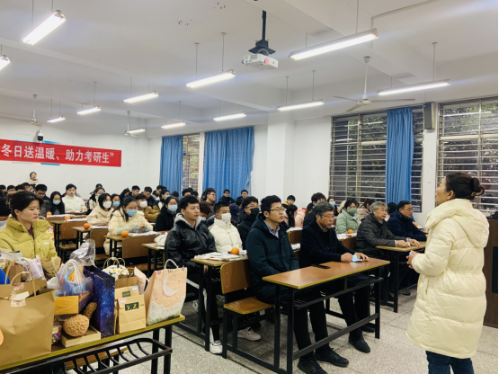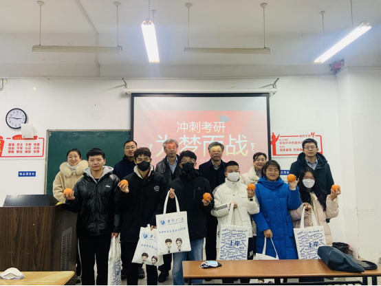为了准备本次慰问活动,学工办辅导员们精心设计了印有“太阳成集团122ccvip”、“太阳成集团122ccvip”和考研相关专业字样的布袋,仔细挑选了考研适用的文具用品和寓意“马到成功”的橙子,分团委又组织了“情暖冬日,逐梦研途”的活动,号召大一大二同学利用空闲时间为考研的学长们制作精美的手工艺品,将满满的心意化在礼物里。最后参加活动的领导、老师为所有考研复习的员工发放了慰问品,同时送上学弟学妹们制作的礼物,祝福考研同学们一战成硕、再续辉煌。现场气氛热烈昂扬,考研员工们纷纷表示,一定咬紧牙关坚持不懈,以最好状态迎接即将到来的考研。