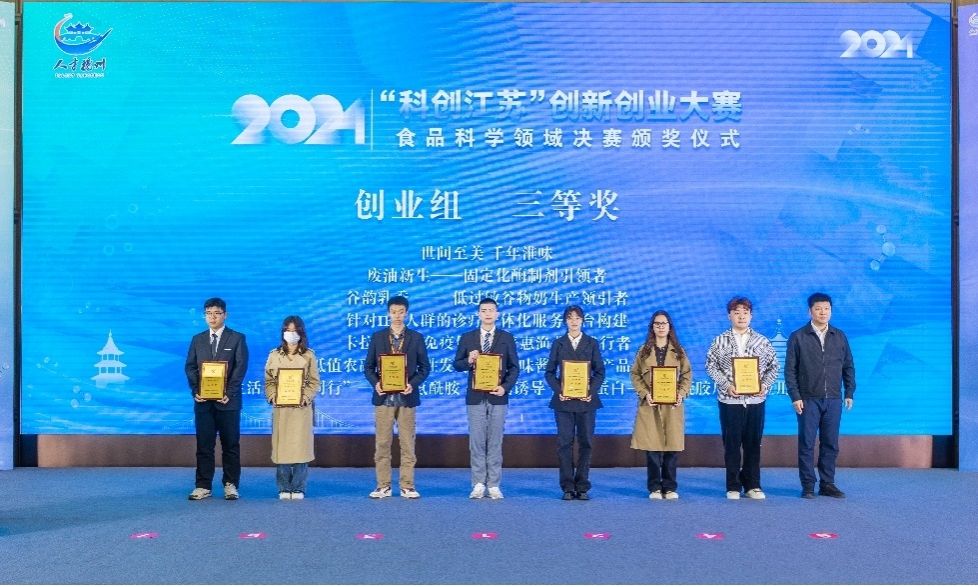 近日,2024年“科创江苏”创新创业大赛食品科学领域决赛在扬州圆满落幕。公司聂小宝老师指导的“世间至美 千年淮味”项目以优异的表现荣获创业组三等奖。