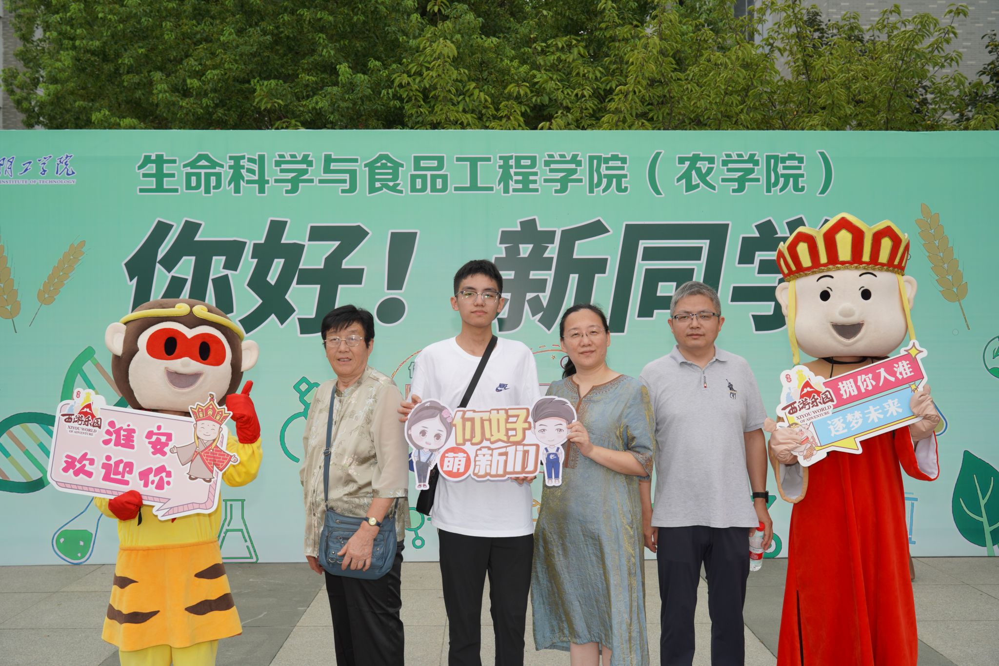 迎新现场活动精彩纷呈,老师、班助以及志愿者热情洋溢。迎新活动有四大特色,一是种子启蒙:播种希望,寄寓成长。迎新现场,公司为每一位新生送上园艺专业员工精心设计的种子卡片。这些由可降解纸浆与植物种子制成的创意卡片,既可留作纪念,也可直接种植,随机生长出各类植物。卡片承载双重寓意:既象征学长学姐对新生“不负韶华”的期许,也寓意新生如种子般需向阳而生、向上成长,在大学蜕变为更好的自己。二是食践引航:舌尖体验,专业初探。食品与生物专业师生联合开展“课程实践展”,制作蛋糕、蛋挞、啤酒、果酒等美食,供新生及家长品尝。通过味蕾的直观体验,新生初步感受专业特色,激发对学科的兴趣与探索欲。三是专业领航:科技赋能,成果展示。开展科技应用成果展,集中呈现13支科研团队的最新成果,专任教师团队现场讲解,帮助新生了解学科前沿动态与公司科研实力,为未来专业学习与学术规划提供参考。四是互动破冰:文化交融,欢乐启程。活动融入淮安地域文化元素,西游玩偶与新生趣味互动,通过游戏与合影打破陌生感,营造轻松氛围,宣传淮安文化的同时助力新生快速融入校园生活。四大特色活动不仅让新生们对自己的专业有了更直观的了解,也加深了他们对公司的认同感和归属感。