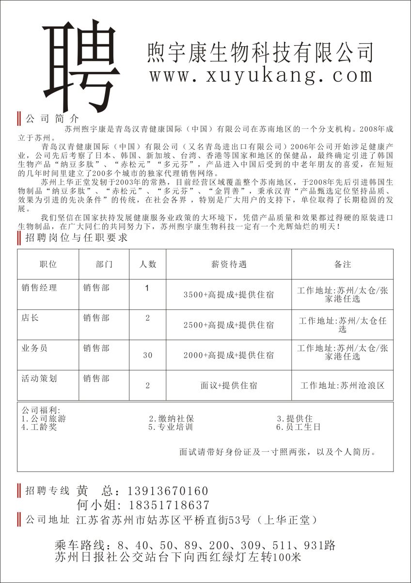 熙宇康生物科技有限公司招聘简章
