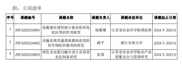依据《江苏省益生制剂重点(建设)实验室开放课题指南》及《江苏省益生制剂重点(建设)实验室开放课题基金申请与管理细则》等文件要求,经申请人自由申报,专家组按照研究方向与实验室契合度以及择优原则讨论和审议决定,2024年度江苏省益生制剂重点(建设)实验室立项资助3项开放课题申请项目,现予以公示。若有异议,请于5月10日前与实验室联系。联系电话:13913920476,邮箱:luochuping@163.com。