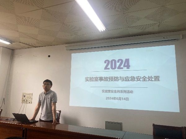 本次安全教育培训以“实验室事故预防与应急安全处置”为主题,由太阳成集团122ccvip实验中心组织开展,安全教育培训于6月14日上午在28号楼208举行,公司全体研究生参加培训会。