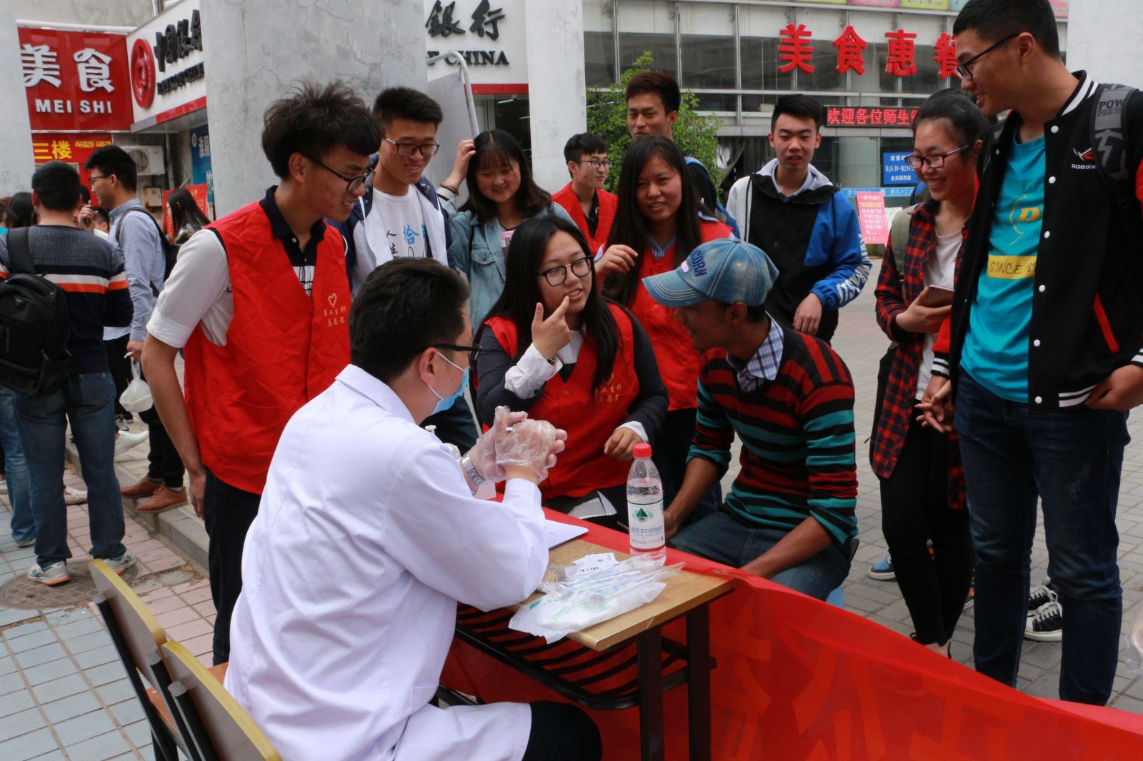 当日上午10点,志愿者带齐活动所需物资到活动现场,各组负责人准备其自身活动并布置现场。同时诺贝尔口腔医院的服务队携带各种物资出发,经一小时到达校园。通过海报和志愿者解说等方法宣传被吸引前来的员工可以到义诊摊前接受免费的口腔健康检查,检查完毕后,员工根据实际情况进行关于其自身口腔健康和牙齿健康问题的咨询,医生一一为员工解答,并提出相应的牙齿保护建议。前来检查的员工还有校园的职工,志愿者注意到有几名职工在义诊摊前站立许久,便过去交流,交流中了解到这数名职工想检查却害怕语言沟通不畅而感到无奈。于是志愿者前去用流畅的英语帮助职工和医生之间的交流,帮助职工和医生解决语言沟通问题。