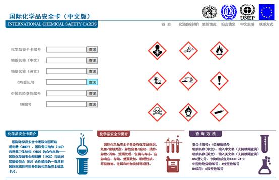 国际化学品安全卡查询地址:http://icsc.brici.ac.cn/
